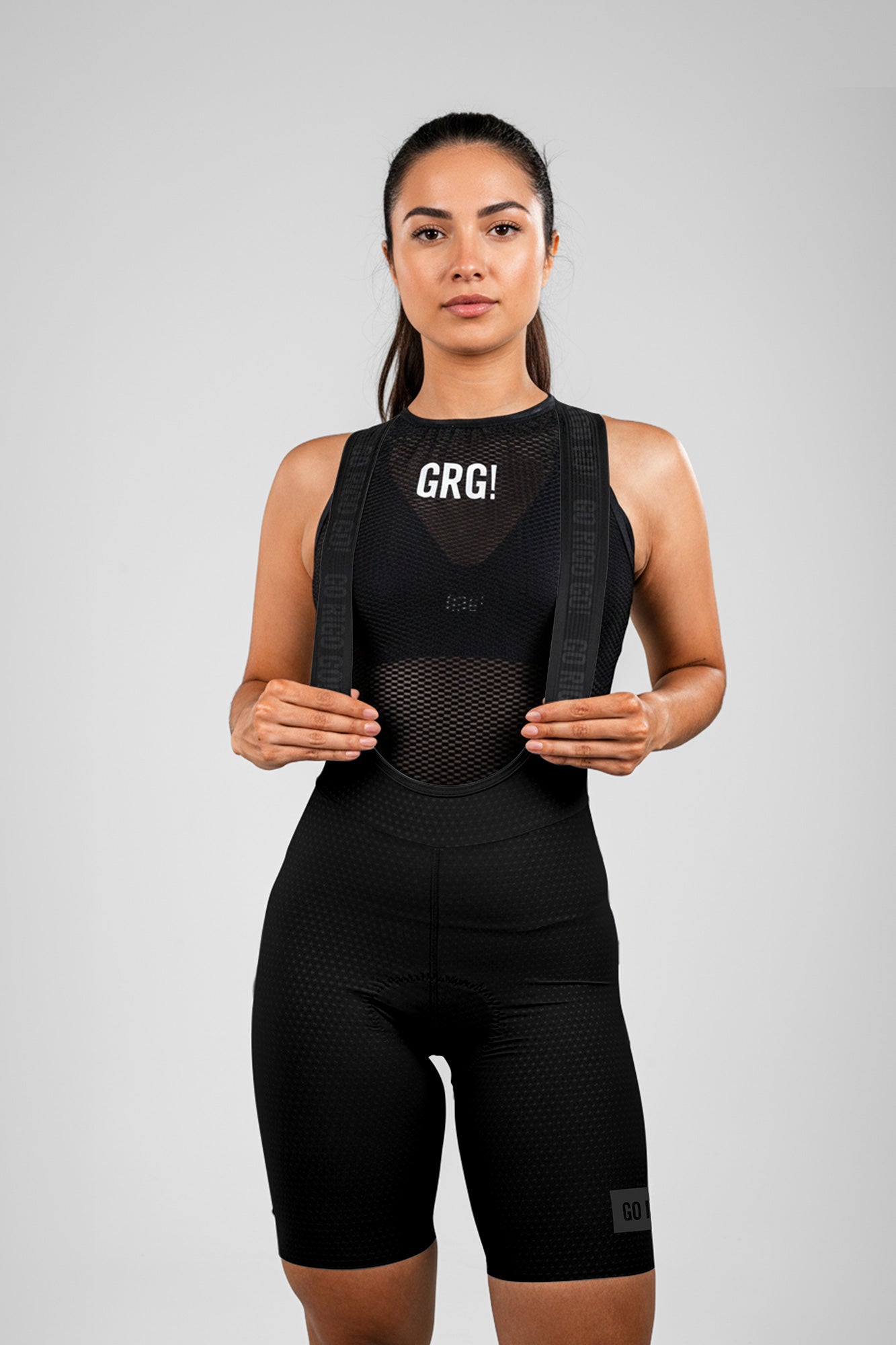 Pantaloneta de Ciclismo Sin Costuras KM200 Black Gofrada Negative